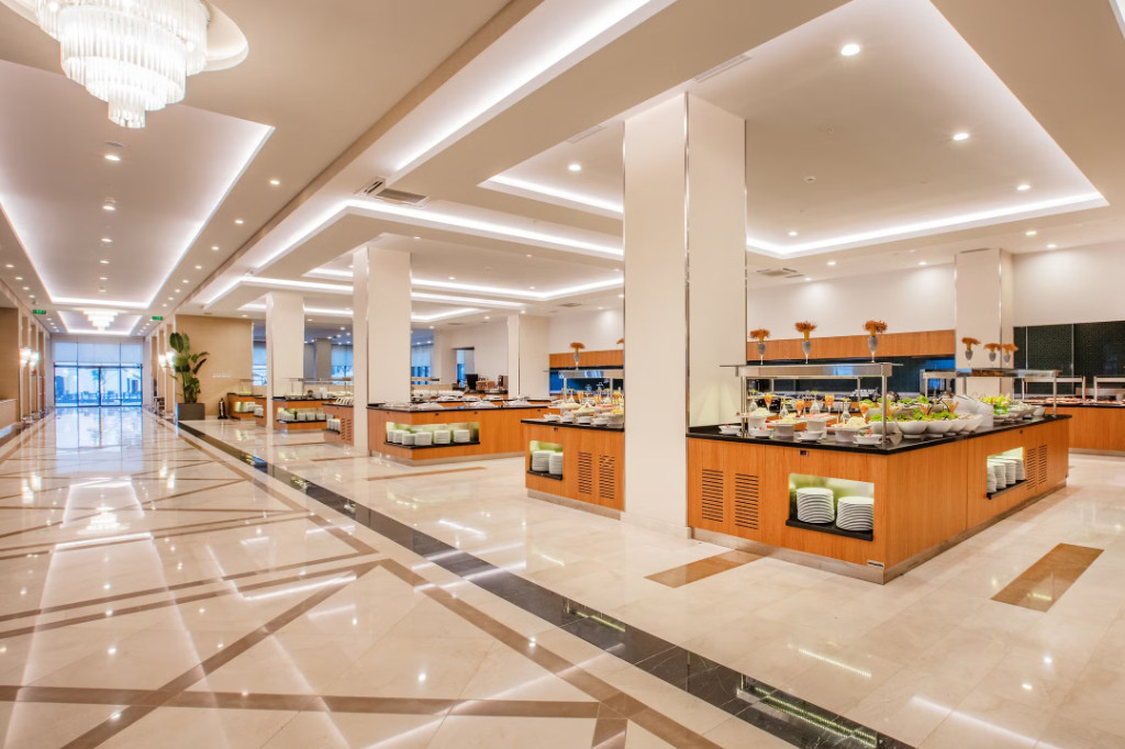 Основен ресторант, 3 а-ла карт ресторанта (турски, международен и рибен - платени), 3 бара, сладкарница, дискотека, открит басейн, закрит отопляем басейн, Аквапарк, СПА център, библиотека, фризьорски салон, паркинг, химическо чистене, лекар.