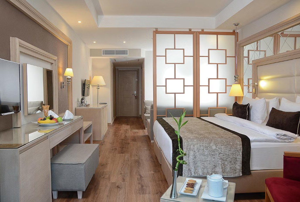 Всички стаи са оборудвани със собствен санитарен възел, индивидуален климатик, сателитна телевизия с музикални канали, телефон, баня с душ или вана, сешоар, минибар, сейф, безжичен интернет и балкон. В суит стаите има джакузи.