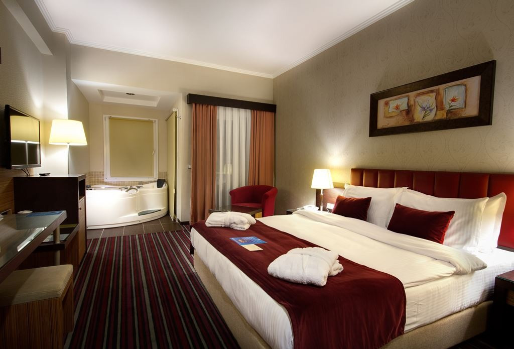 Хотелът разполага с 586 стаи: стандартни (29 м²), супериор (35 м², спалня и диван, едно помещение), фамилни стаи (35 м² - с една обща стая със спалня, единично легло и диван, свързваща врата), супериор фамилни стаи (55 м² - една стая със спалня, единично легло и диван, втората стая с две единични легла, две бани) и 8 двустайни фамилни апартамента (41 м² - с две отделни спални, една баня), стаи за хора с ограничена подвижност. Всички стаи са оборудвани с климатик, телевизор, телефон, баня с душ/вана, сешоар, минибар (еднократно зареждане с безалкохолни напитки в деня на пристигане, последваща зареждане и алкохолни напитки- срещу заплащане), сейф (безплатен), Wi-Fi, балкон. Почистване на стаите – всеки ден, смяна на спалното бельо и кърпите – 3 пъти в седмицата.