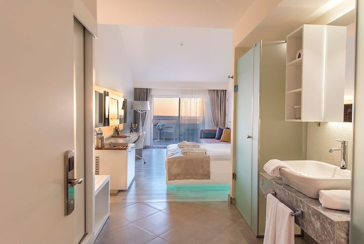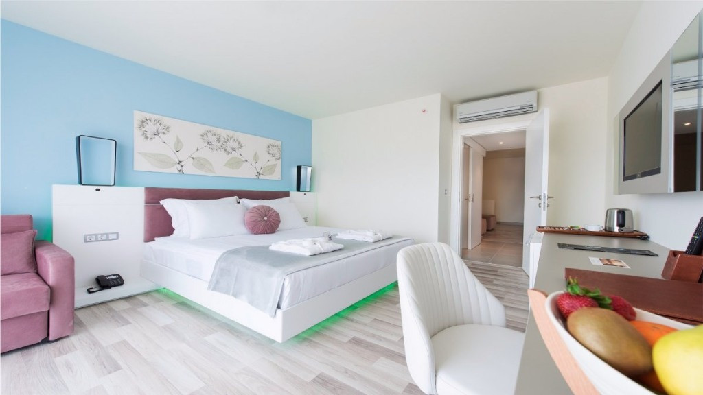Хотелът разполага с 240 стаи, разпределени в 2 сгради. В основната сграда са разположени: 49 Deluxe room Land view (29 кв.м); 21 Deluxe room sea view (29 кв.м); 7 Deluxe superior sea view room (32 кв.м, разполага с голяма тераса с кът за отдих); 43 Family suite side sea view (38/45 кв.м /1 стая със спалня, 1 стая с единични легла, 1 баня); 12 Family suite land view (38 кв.м /1 стая със спалня, 1 стая с единични легла, 1 баня). В допълнителната сграда са разположени: 82 Standard room ( 23 кв.м); 16 Swim up room (23 кв.м, cтаите са с директен достъп до басейна. В този тип стаи не се допуска настаняване на деца). Всички стаи са оборудвани с климатик, телевизор, телефон, баня с душ, сешоар, сет за чай/кафе, минибар (платен), сейф (безплатно), балкон, Wi-Fi интернет (безплатно). Почистване на стаите - всеки ден, смяната на спалното берьо и кърпите - 3 пъти в седмицата.