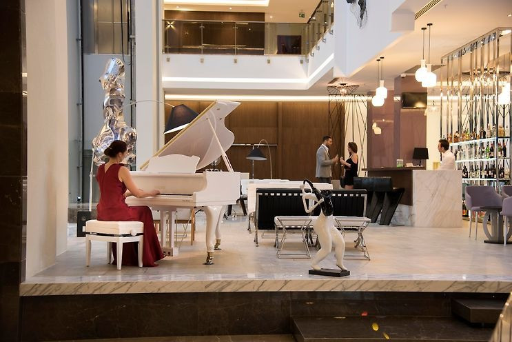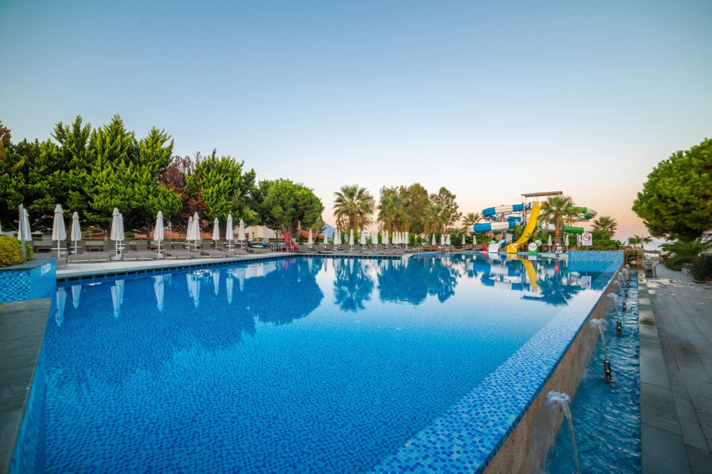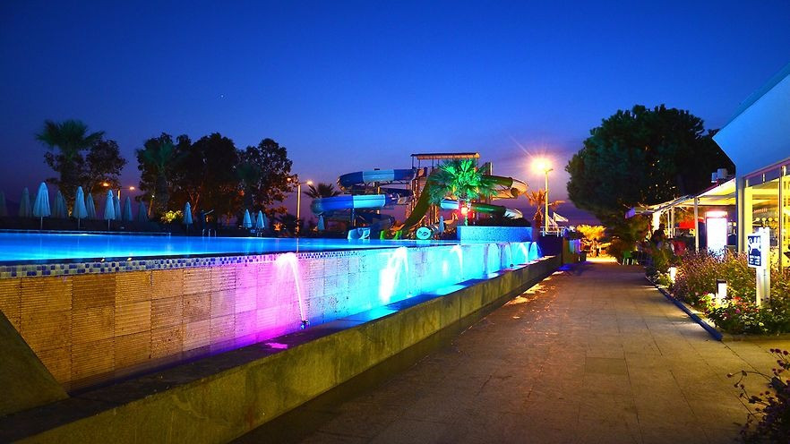 Основен ресторант, 2 а-ла-карт ресторанта, 3 бара, сладкарница, дискотека (напитки срещу заплащане), 4 открити басейна, 2 закрити басейна (1 oтопляем), аквапарк с 3 водни пързалки, СПА център, мултифункционално игрище, магазинии, паркинг.
