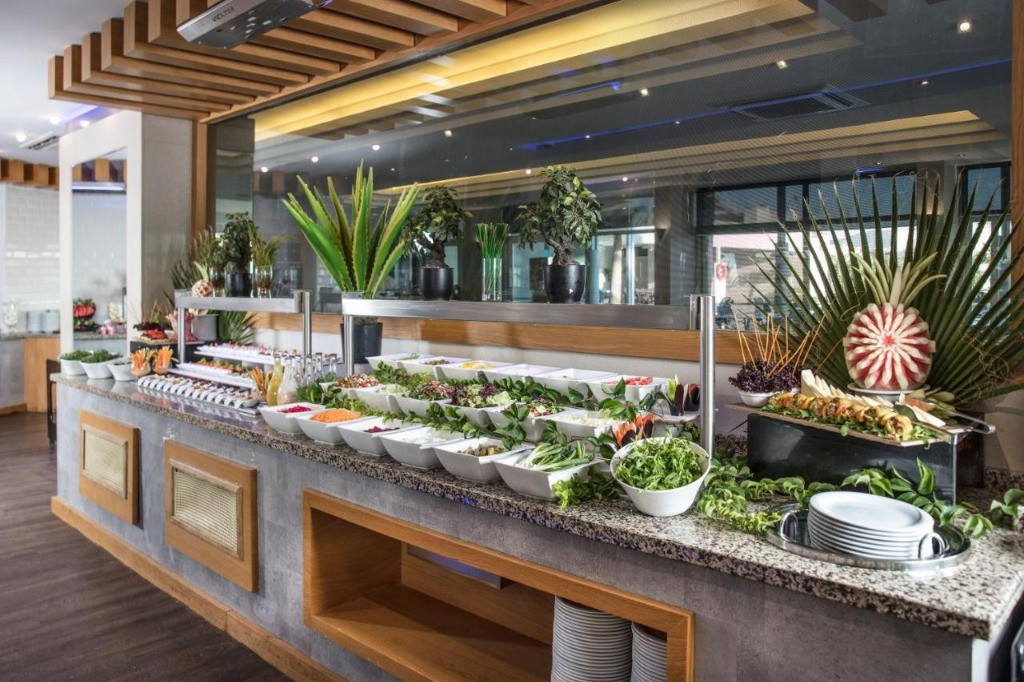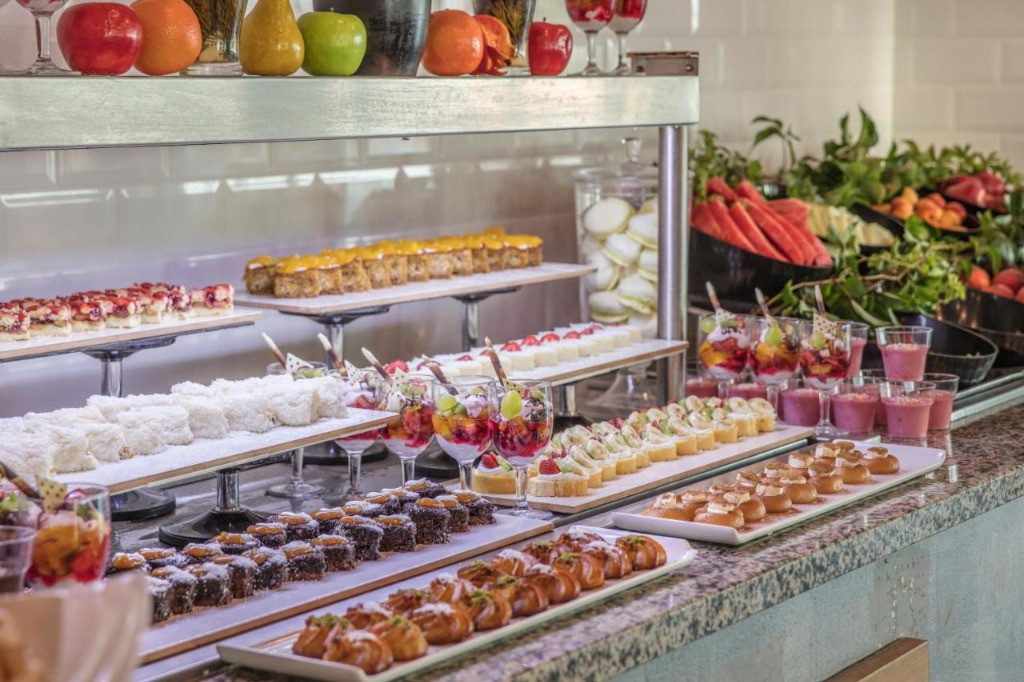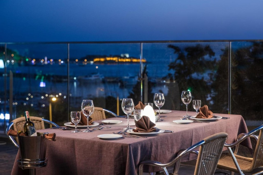 Основен ресторант, А-ла карт ресторант- платен, 3 бара, 2 открити басейна.