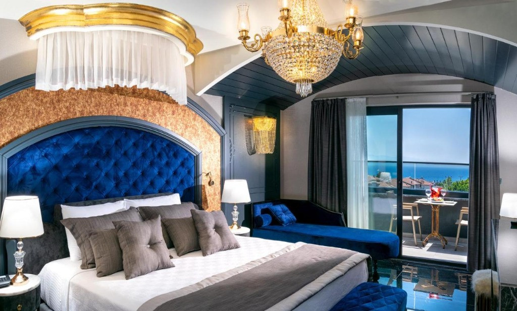 Хотелът разполага с 25 стаи, от които 18 Делукс стаи с гледка море (32 м2 ), 7 Ексзекютив стаи оборудвани с джакузи и камина (32 м2 ). Всички стаи са оборудвани с климатик, телевизор, телефон, баня, сешоар, сет за чай/кафе, минибар, сейф, балкон, Wi-Fi интернет. Почистване на стаите - всеки ден, смяна на кърпи и спалното бельо - 3 пъти в седмицата.