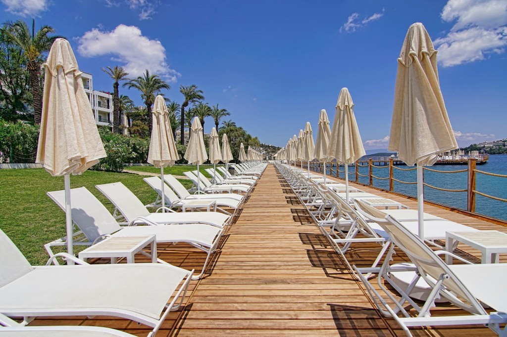 ПЛАЖ: собствен, пясък/чакъл, платформа. Притежател на сертификат "Син флаг" с дължина 250 м. Бар на плажа – безплатно. Чадъри, шезлонги, матраци – безплатно. Плажни кърпи: безплатно. При басейна: чадъри, шезлонги, матраци – безплатно.