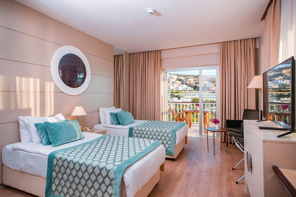 Хотелът разполага с общо 193 стаи, от които Deluxe sea view (28-30 m2), Deluxe quatro room (35m2), Deluxe Teracce Suite (60m2), Senior suite (72m2). Всяка стая е оборудвана с климатик, телевизия, телефон, баня с душ, сешоар, мини бар, сет за кафе и чай, сейф, балкон или тераса с кът за сядане, WI-FI(безплатно). Почистване на стаята – ежедневно, смяна на спално бельо – ежедневно, room service (24 часа, платено).