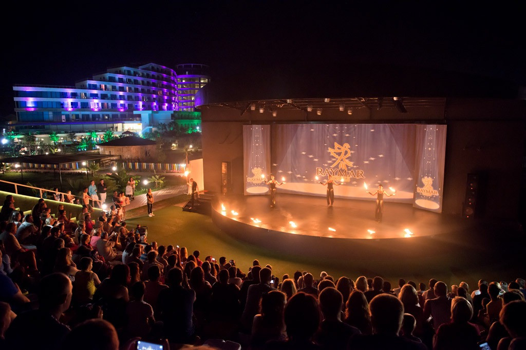 Основен ресторант, а ла карт ресторант, бар, сладкарница, снек бар, бар на басейна, СПА център, фитнес, аквапарк, детски клуб, волейбол, баскетбол, тенис корт, билярд, дартс, водни спортове, амфитеатър, дискотека.