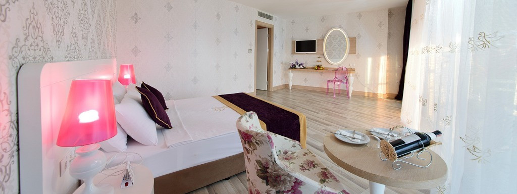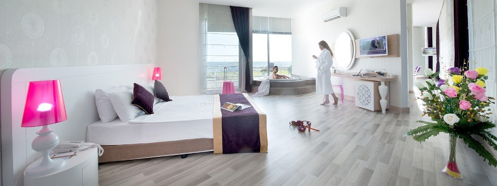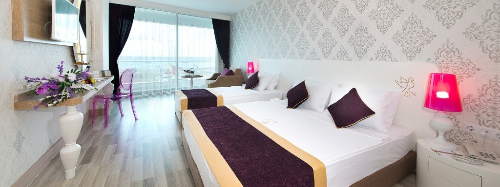 Разполага с 266 стаи разположени на 9 етажа и от типа стандартни, семейни, junior suites, king room. Стандартните стаи са с 1 двойно легло или 2 единични; семейните се състоят от две отделни стаи; junior suites разполага със спалня и всекидневна и директна гледка море; king rooms - просторна стая и дневна. Всички типове стаи са оборудвани със собствена баня с душ, плазмен телевизор, телефон, интернет, сейф и мини бар. Всички стаи имат балкон и гледка море/ градина.