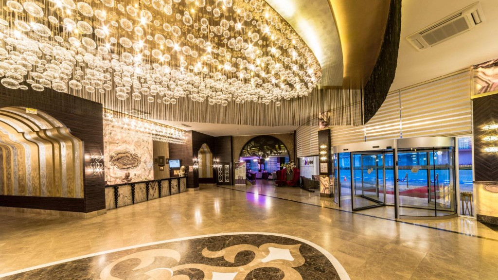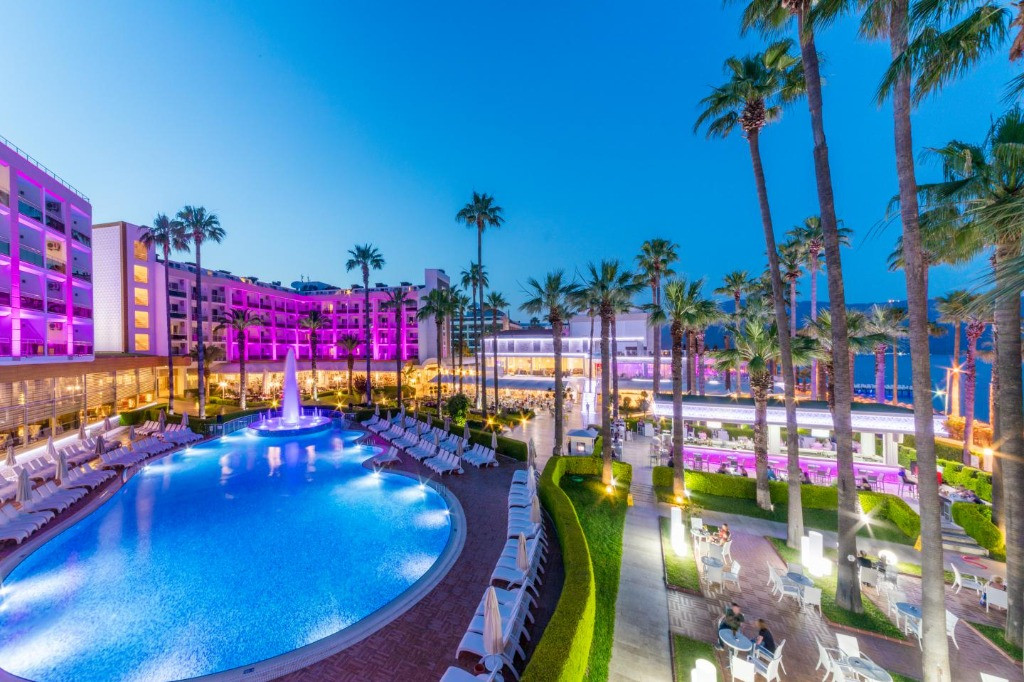 Основен ресторант, 2 а-ла-карт ресторанта, 4 бара, сладкарница, дискотека, 2 открити и 1 закрит бесейн, водни пързалки (работят 3 часа на ден), конферентна зала, СПА център, фитнес, турска баня, сауна. За децата: детски басейн, водна пързалка, детска площадка. Безплатни услуги: Фитнес, турска баня, сауна, вечерна шоу програма, жива музика. Платени услуги: Масажи, пилинг, фризьор, лекар, билярд, химическо чистене. Плаж: Собствен, пясъчен. Чадър и шезлонги на плажа и при басейна – безплатно. Плажни кърпи – срещу депозит.