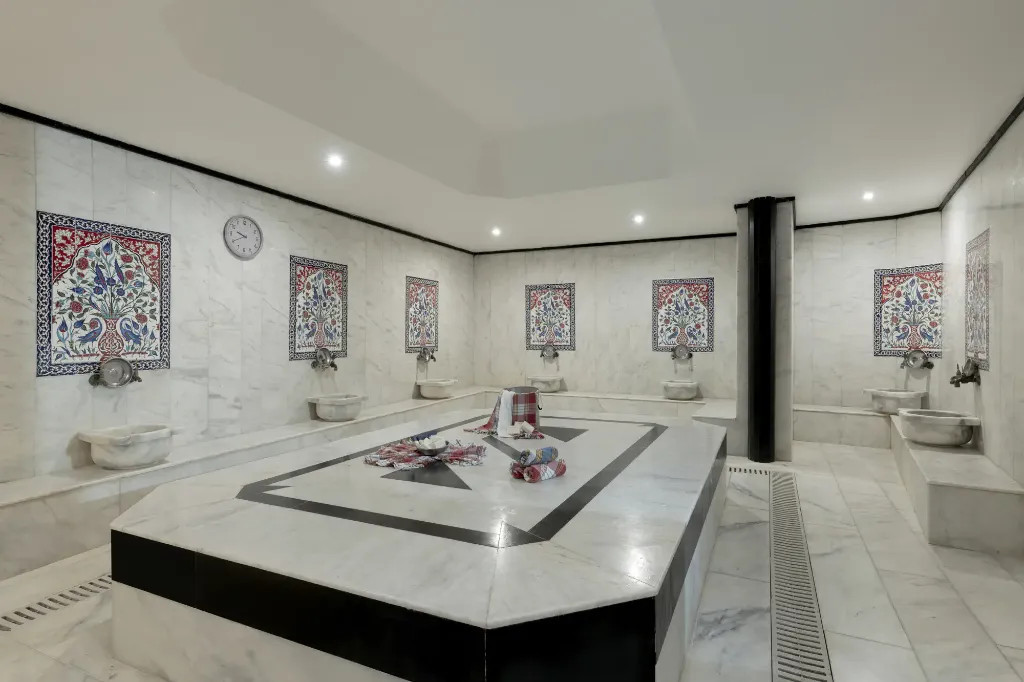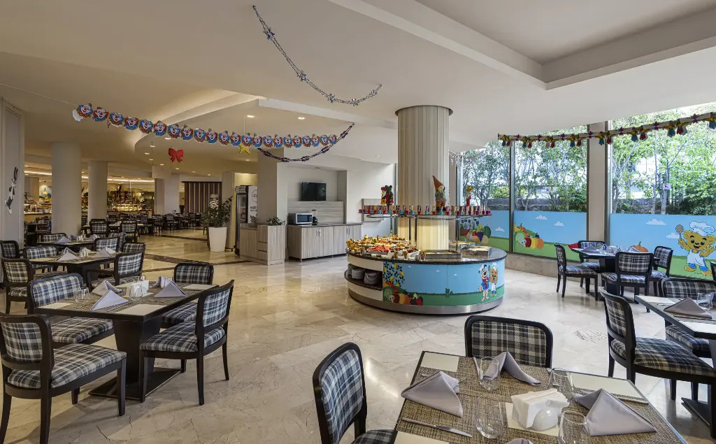 Основен ресторант (има диетична и вегетарианска храна), 3 ресторанта a la carte (италиански, турски, барбекю - с предварително записване, за седмичен престой 1 посещение на един от ресторантите по избор - безплатно), 4 бара, дискотека, 2 открити басейна, 1 закрит басейн (с подгряване през зимния период), 2 водни пързалки, Спа център, фризьорски салон, магазини, пералня и химическо чистене.