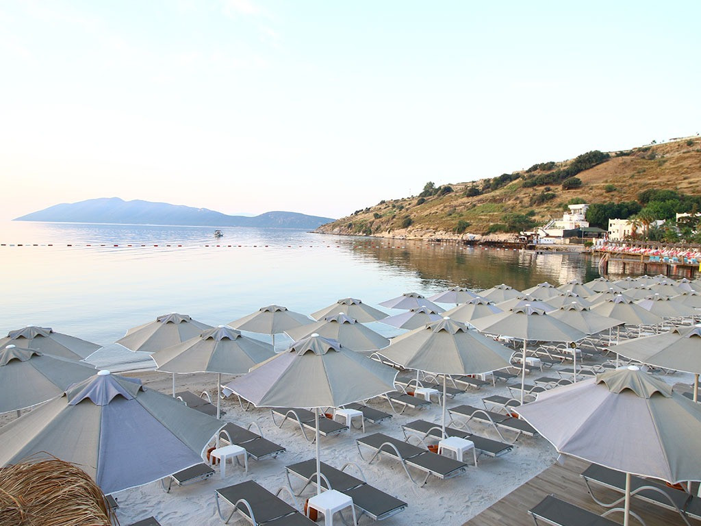 Собствен, пясъчен, чадъри и шезлонги на плажа и при басейна - безплатно.
