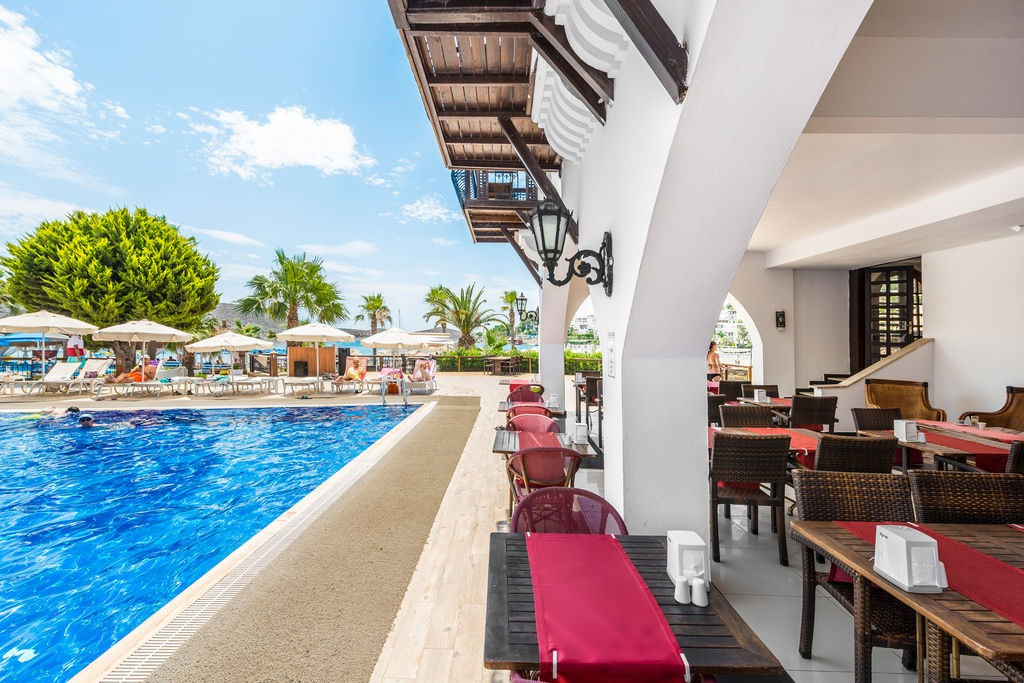Хотелът се намира на 48 км. от летище Милас, на 8 км. от центъра на Бодрум, в района на Битез с отлична локация, на брега на морето. Хотелът е реновиран 2016 г, разположен в/у площ от 4,250 кв. м.