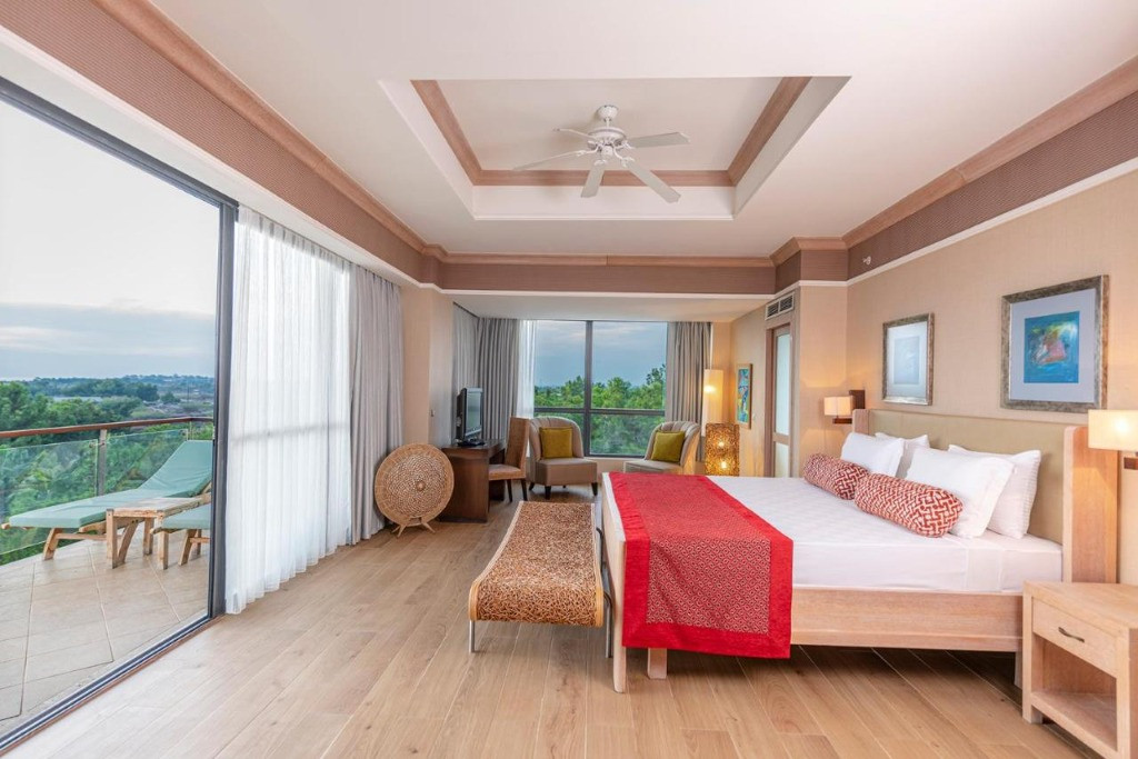 Хотелът се намира на 46 км. от международното летище в Анталия, на 54 км. от центъра на града, на брега на морето. Намира се в топ 100 на най-добрите GOLF хотели в света. Хотела е разположен на 1.000.000 m2, като 600 000 кв. м. са игрища за голф с гледка към плажната ивица.