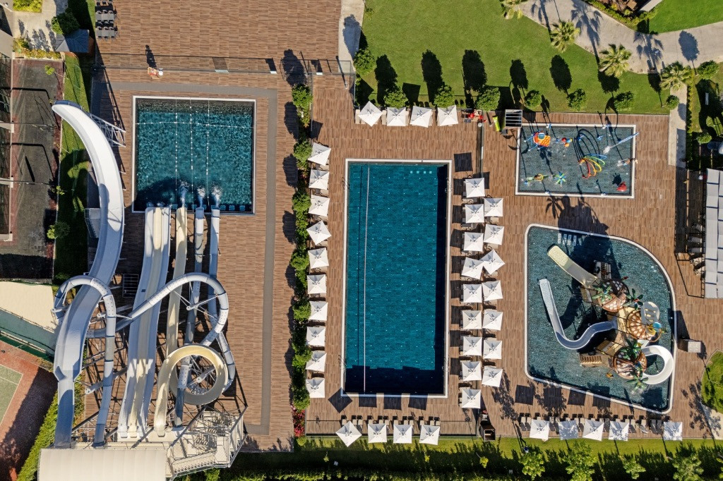 Основен ресторант, 1 а-ла-карт ресторант (с предварителна резервация, съгласно концепцията на хотела), 3 бара (1 от които 24 часа), закрит и открит басейн, аквапарк с 5 водни пързалки, СПА център.