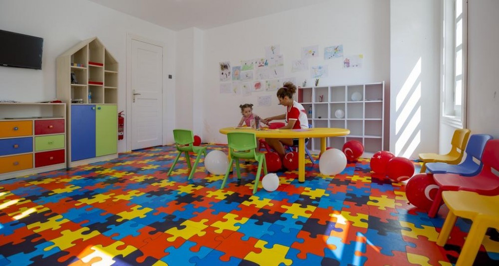 Основен ресторант, 2 а-ла-карт ресторанта (италиански и турски), бар на плажа, сладкарница, 2 открити и 1 закрит басейн, водни пързалки, амфитеатър, магазини. За децата: Детски басейн, водни пързалки, детска площадка, мини клуб (4-12), анимация. Безплатни услуги: Сауна, турска баня, фитнес, WiFi (в лоби). Платени услуги: Масаж, СПА център, фризьор, химическо чистене, аеробика, тенис на маса, дартс, рент-а-кар, интернет.